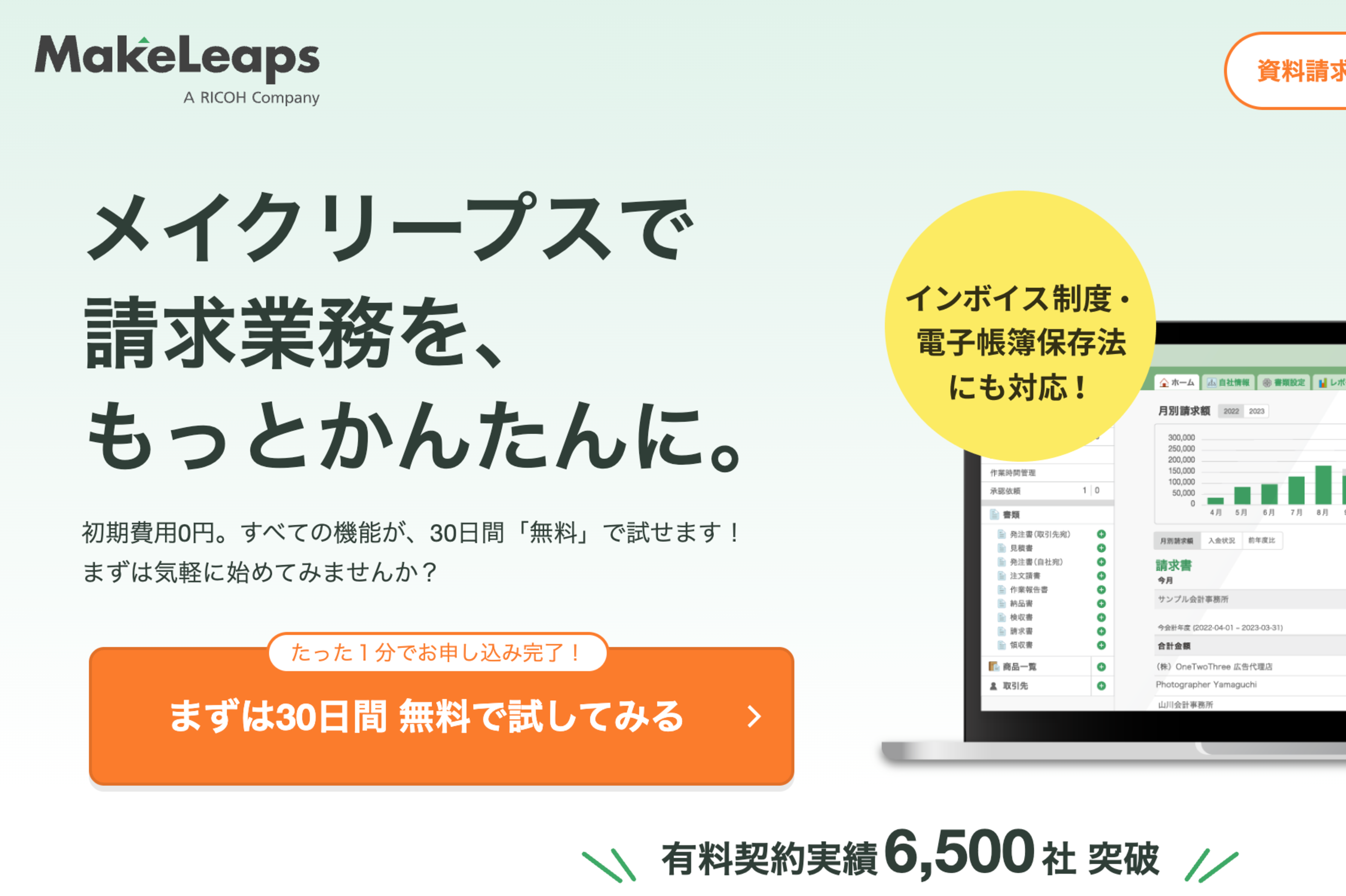 Originally bootstrapped inside Jay Winder's Webnet IT consultancy, MakeLeaps now operates as part of the Ricoh Group, pairing workflow approvals, bank integrations, and multi-language templates to cut administrative time by up to 80% for freelancers and companies across Japan.